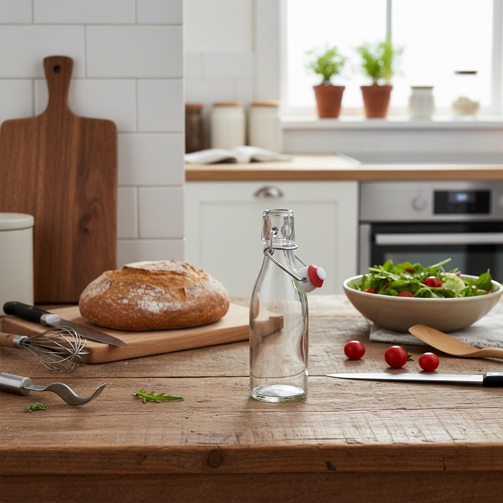 Proizvodna serija „Paul“ iz Flaschenlanda obuhvaća visokokvalitetne staklene boce od 100 ml s praktičnim zatvaračem na kopču, koje se ističu svojom svestranošću i izdržljivošću. Ovi stakleni spremnici posebno su dizajnirani za sigurnu pohranu i elegantnu prezentaciju likera, žestokih pića i drugih napitaka. Staklene boce iz serije „Paul“ izrađene su od otpornog stakla koje je otporno na hladnoću, toplinu te prikladno za mikrovalnu pećnicu i pećnicu. Zbog toga su izuzetno svestrane i mogu se bez problema koristiti u različitim temperaturnim uvjetima. S kapacitetom od 100 ml idealno su dimenzionirane za male količine, a zahvaljujući praktičnom zatvaraču na kopču pružaju hermetičko i sigurno zatvaranje. Boce su prikladne za pranje u perilici posuđa.