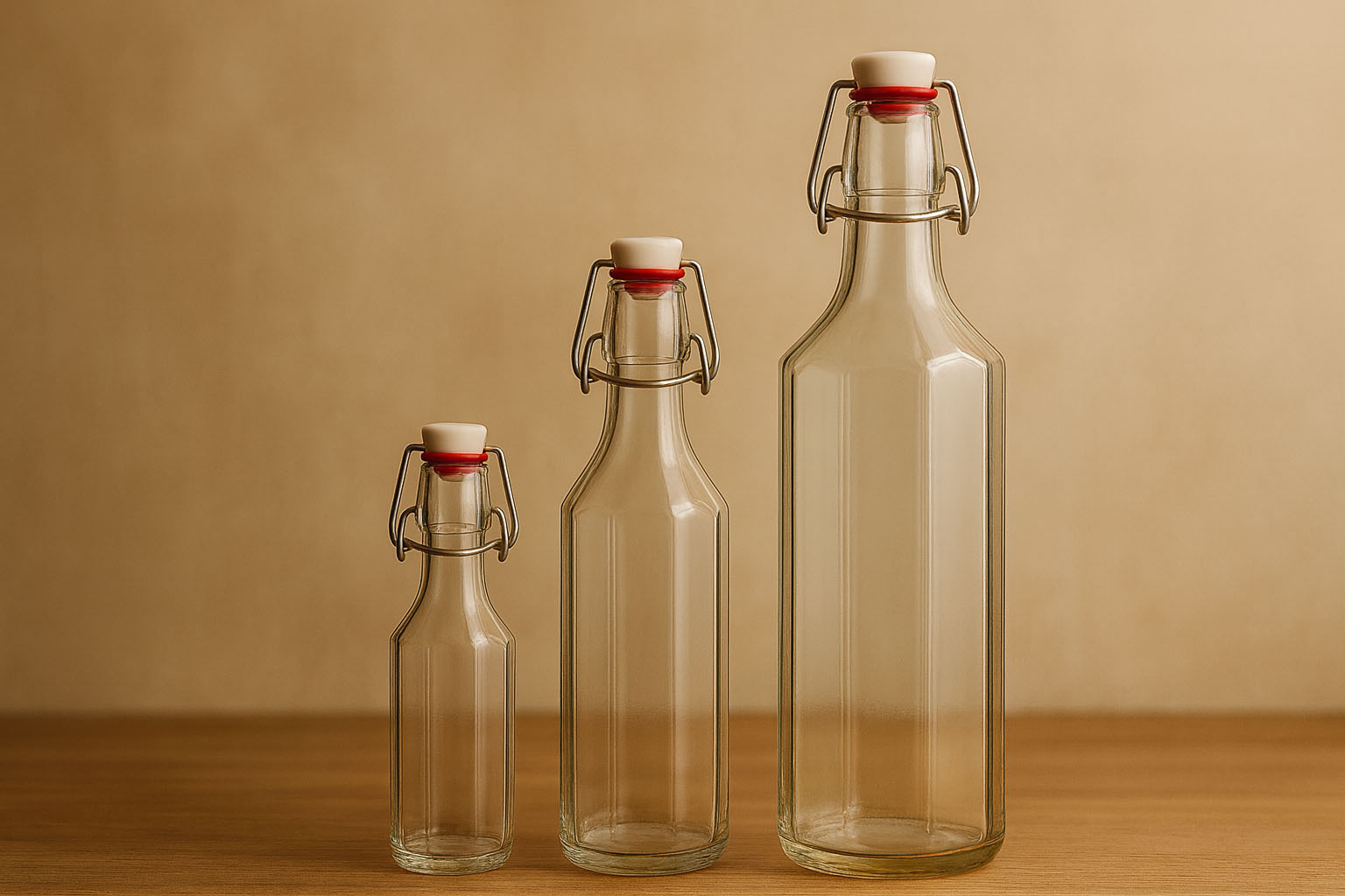 Serija „Bravo“ oduševljava svojim upečatljivim, desetostrukim oblikom koji spaja eleganciju i funkcionalnost. Izrađena od visokokvalitetnog prozirnog stakla, ova izvanredna boca stilizirano ističe svoj sadržaj. Dostupna u volumenskim veličinama od 250 do 1000 ml, „Bravo“ nudi savršeno rješenje za razne vrste pića. Zahvaljujući praktičnom zatvaraču s kopčom, za koji su u našem asortimanu dostupni odgovarajući čepovi, spaja tradicionalni sustav zatvaranja s modernom estetikom.