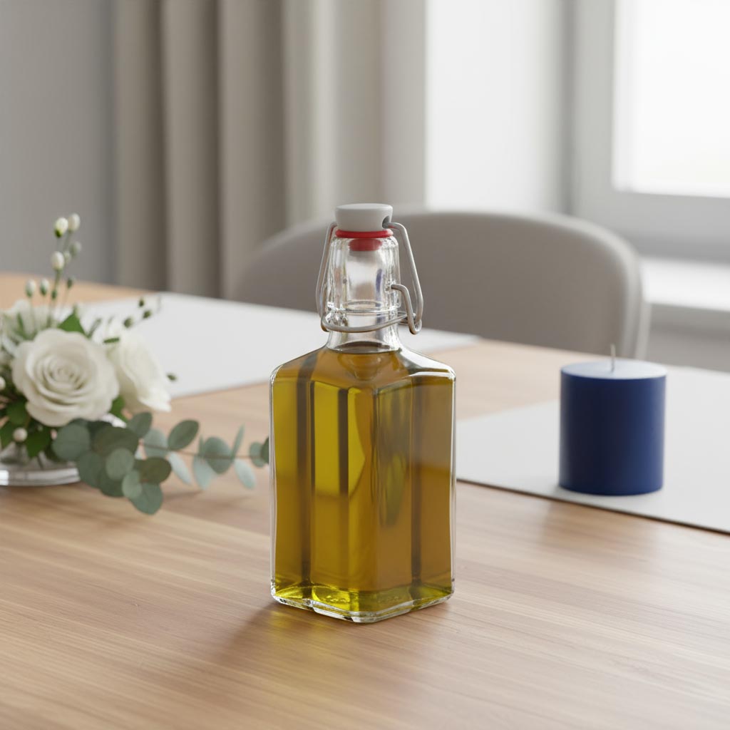Proizvodna serija "Rialto" iz Flaschenlanda obuhvaća visokokvalitetne kvadratne staklene boce zapremine 250 ml s praktičnim zatvaračem na kopču – idealne za sigurno i elegantno čuvanje raznih tekućina. Staklene boce iz serije Rialto odlikuju se robusnim i otpornim materijalom na toplinu. Otporne su na hladnoću, prikladne za perilicu posuđa, mikrotalasnu pećnicu i pećnicu, što omogućuje svestranu upotrebu. Kvadratni oblik omogućava štednju prostora pri skladištenju i elegantan izgled. Zatvarač na kopču jamči nepropusno zatvaranje i jednostavno zatvaranje. Sa zapremninom od 250 ml, boce su optimalne za ocat, ulje, likere, žestoka pića i rakiju.