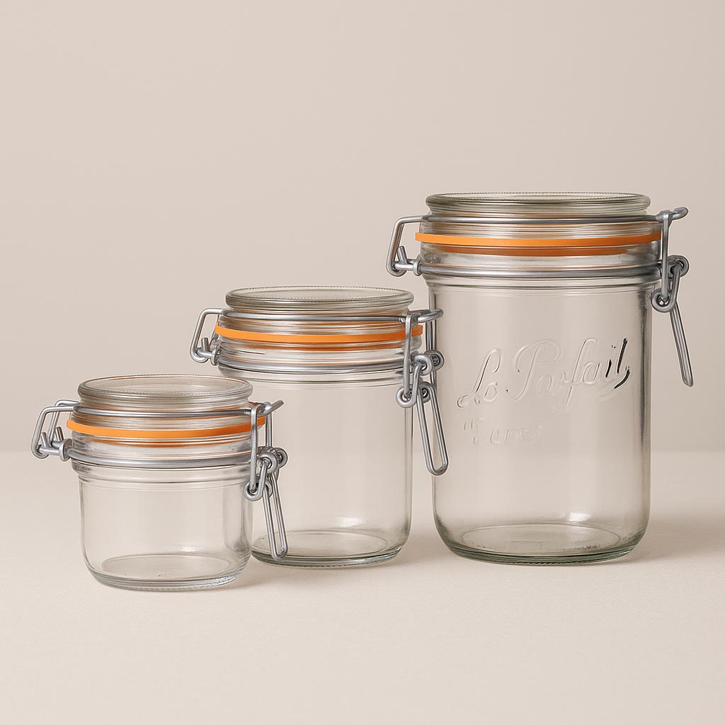 Serija "Super Terrine" tvrtke Le Parfait predstavlja autentičnu francusku rukotvorinu i nudi visokokvalitetno rješenje za očuvanje i prezentaciju hrane. Ovaj klasični staklenka s metalnim zatvaračem i reljefom "Le Parfait Super" posebno je dizajniran kao okrenuta staklenka koja omogućuje lako vađenje kolača, tortica i drugih deserata. Također je idealan za džemove, mesne i kobasice konzerve te razne fine namaze. Sa zapremninom od 125 do 1000 ml, "Super Terrine" pruža svestranu primjenu. Priloženi stakleni poklopac i karakteristični narančasti gumeni prsten osiguravaju sigurnu, hermetičku brtvu.